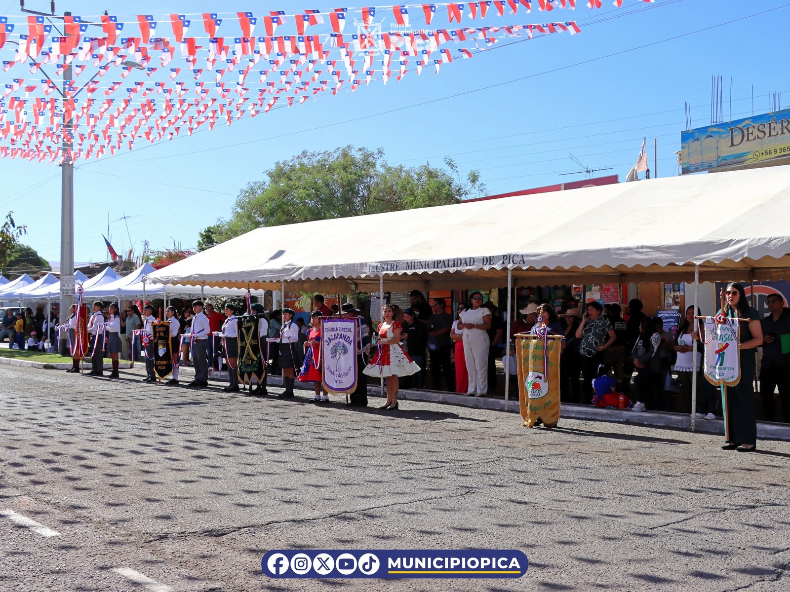 La jornada estuvo marcada por la fuerza y el talento de las bandas de guerra del Liceo Bicentenario Padre Alberto Hurtado Cruchaga y de la Escuela San Andrés de Pica, además de la banda instrumental invitada del Colegio San Pedro de Alto Hospicio, que llenaron la explanada de marcialidad y emoción.