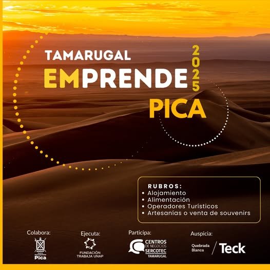 Invitamos a los formalizados que componen la planta turística, como alojamientos, gastronómicos, guías y artesanos o quienes vendan souvenirs a postular al programa Tamarugal Emprende 2025, orientado a apoyar 20 pequeñas empresas del sector turístico buscando dar continuidad a sus proyectos.