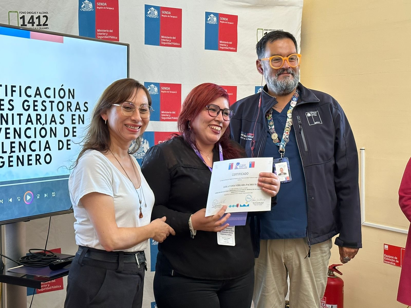 En las instalaciones de la Oficina Regional de SENDA, la SEREMI de Salud de Tarapacá y el Servicio de Salud, certificó a 15 mujeres como Gestoras Comunitarias en Prevención de la Violencia de Género, con el objetivo de fortalecer sus conocimientos en esta materia, para que ellas puedan promover acciones preventivas en sus comunidades y contribuir de manera estratégica al apoyo y orientación de otras mujeres que requieran un acompañamiento comunitario.