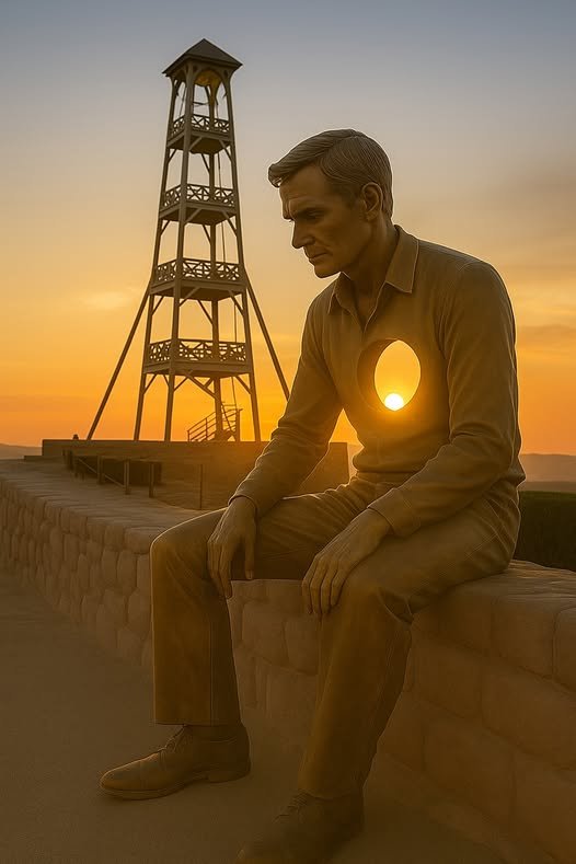 Él se había convertido en leyenda viva. Y luego, en leyenda perpetua: esta escultura que ahora lo inmortaliza sentado eternamente, mirando hacia donde ella se fue, con el corazón abierto esperando que el sol—y tal vez ella—lo atraviesen una vez más.