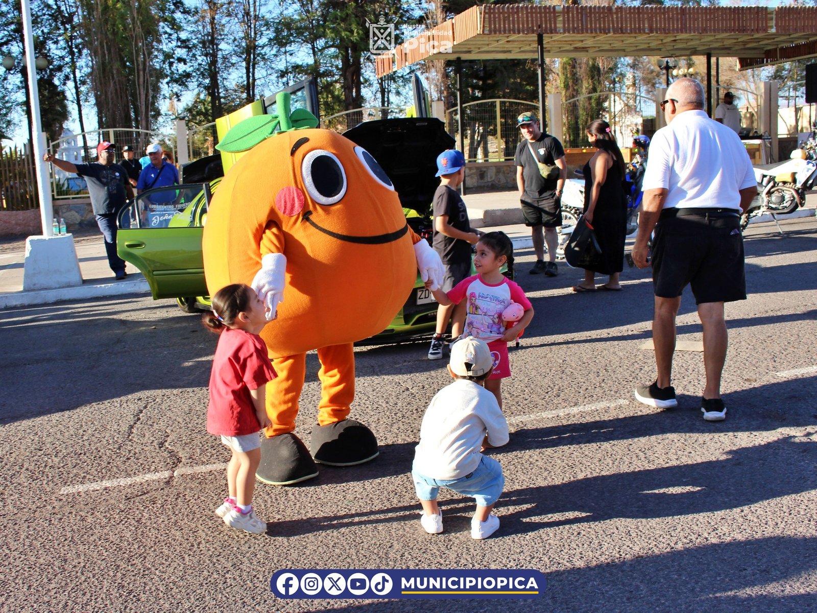La tarde se llenó de movimiento y sorpresas: la zumba contagió a todos, los autos tuning y las motos llamaron la atención del público, y los juegos hicieron que los niños disfrutaran sin parar. El momento más esperado llegó con Naranjín, quien desató la energía de los más pequeños con bailes y risas que iluminaron la jornada.
