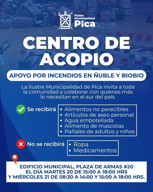 Frente a la emergencia que afecta a las regiones de Ñuble y Biobío, como municipio hacemos un llamado a la solidaridad de nuestra comunidad.