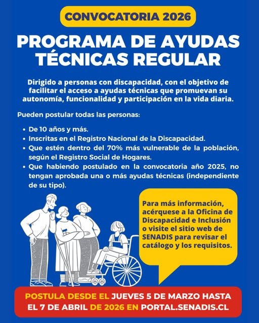 Si necesitas orientación, información o apoyo para postular, acércate a la Oficina de Discapacidad e Inclusión, ubicada en Balmaceda #371.