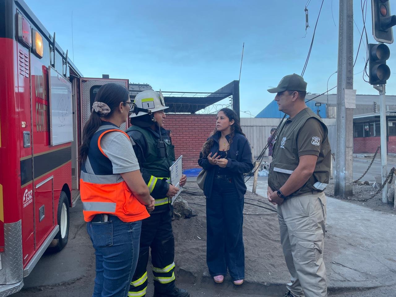 La fiscal explicó que “cerca de las 3:34 de la madrugada se recibió un comunicado por parte de Bomberos para concurrir al barrio industrial de Zona Franca de Iquique, por la afectación de un incendio en distintos galpones, resultando en concreto cinco de ellos afectados en su totalidad, los que albergaban vehículos y motores, por tal naturaleza necesariamente acelerantes y aceites”.