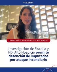 La fiscal (s) de la Unidad de Delitos Violentos de la Fiscalía Local de Alto Hospicio, María Jesús Quinteros, informó los resultados de la audiencia de formalización de la investigación, indicando que “respecto de dos imputados, decretando el juez de garantía la medida cautelar de prisión preventiva respecto de uno de ellos, a quien el Ministerio Público le imputa los delitos de incendio y uso de artefacto incendiario, delito contemplado en la Ley de Armas. Respecto de la segunda imputada, se le formalizó por los delitos de amenazas, daños y también incendio, decretando el tribunal otras medidas cautelares a su respecto”. Finalmente, el tribunal fijó como plazo de investigación 60 días.