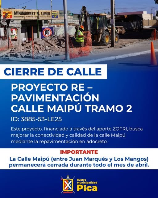 Informamos el inicio de las obras del proyecto “Re–Pavimentación Calle Maipú Tramo 2”, una importante mejora para la conectividad y calidad de nuestras calles.